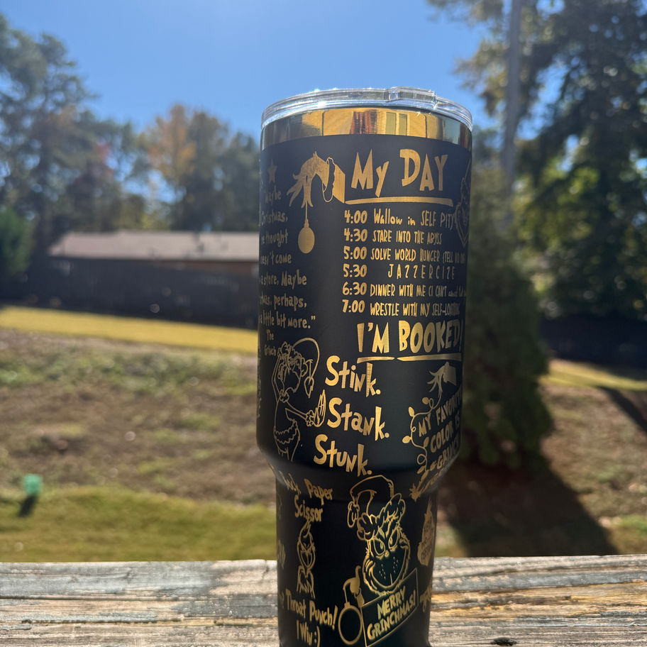 Add a little mean green mischief to your holiday season with our Grinch-Inspired Engraved 40oz Tumbler! Each tumbler is permanently engraved in our studio—no vinyl, no peeling, just crisp artwork that lasts a lifetime. A perfect holiday gift for Grinch lovers, teachers, coworkers, or anyone who enjoys festive drinkware.